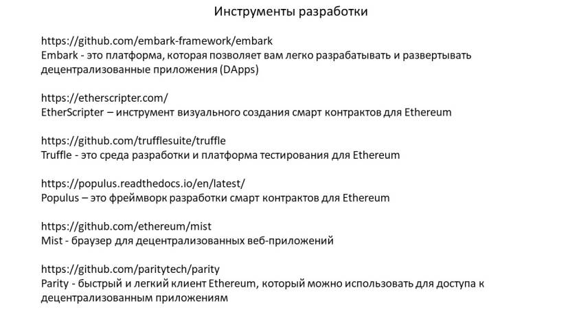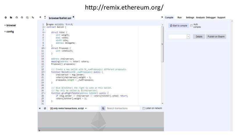 Для разработки смарт контрактов и изучения языка Solidity рекомендуется использовать среду разработки Remix.