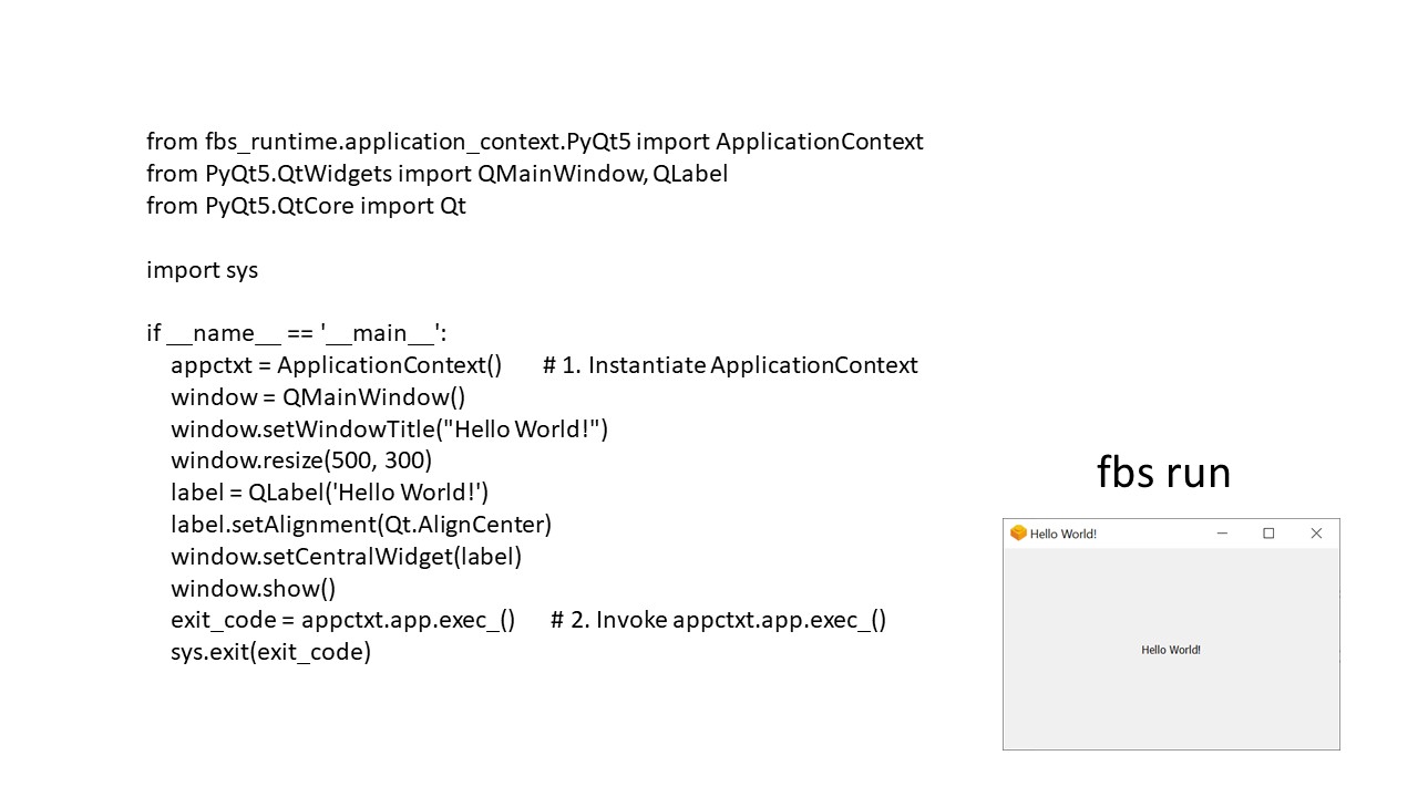 В результате после вызова команды fbs run мы увидим окно с меткой.