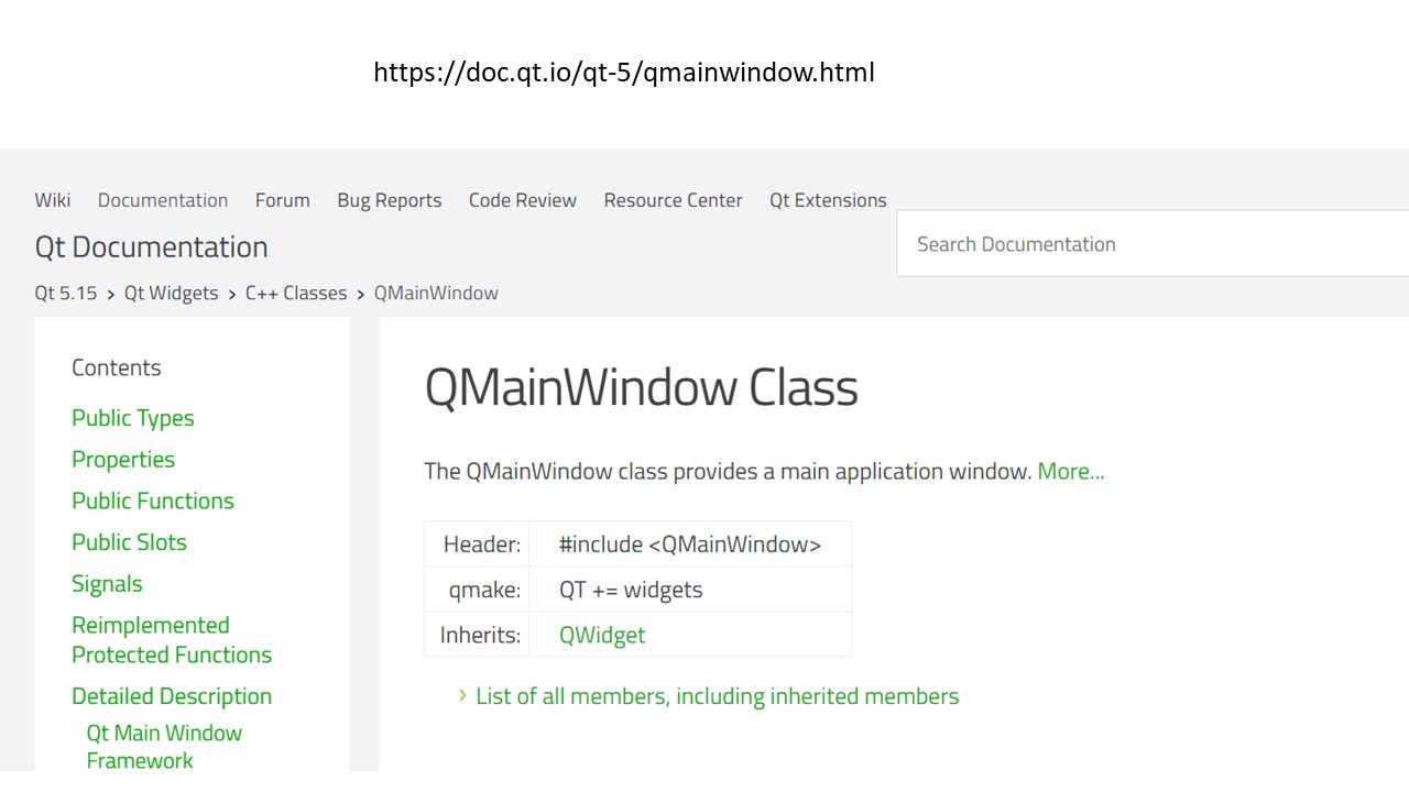 Более подробно про окно QMainWindow можно посмотреть в