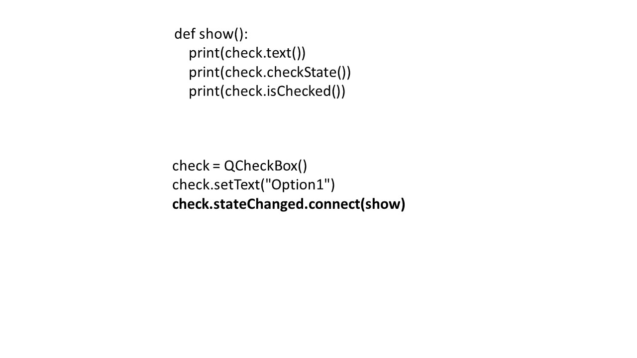 Мы делаем это с помощью метода stateChanged.connect.
