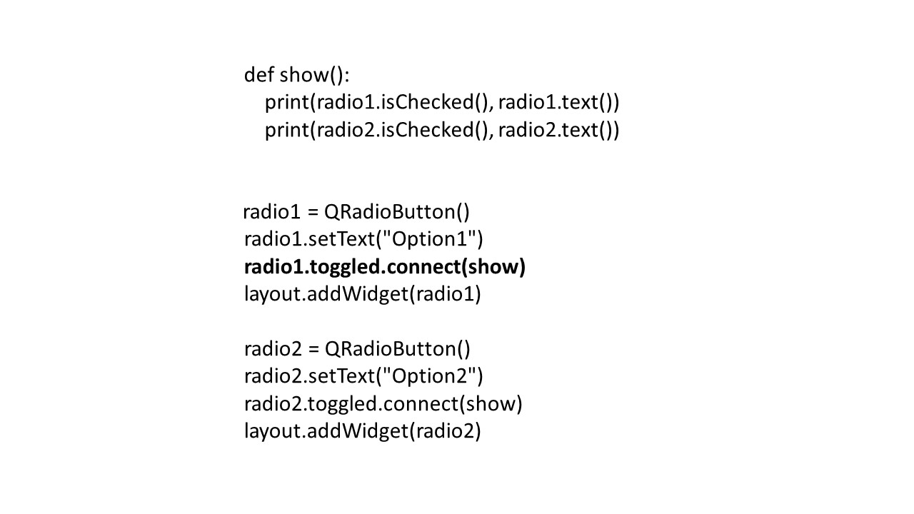 Мы делаем это с помощью метода toggled.connect.