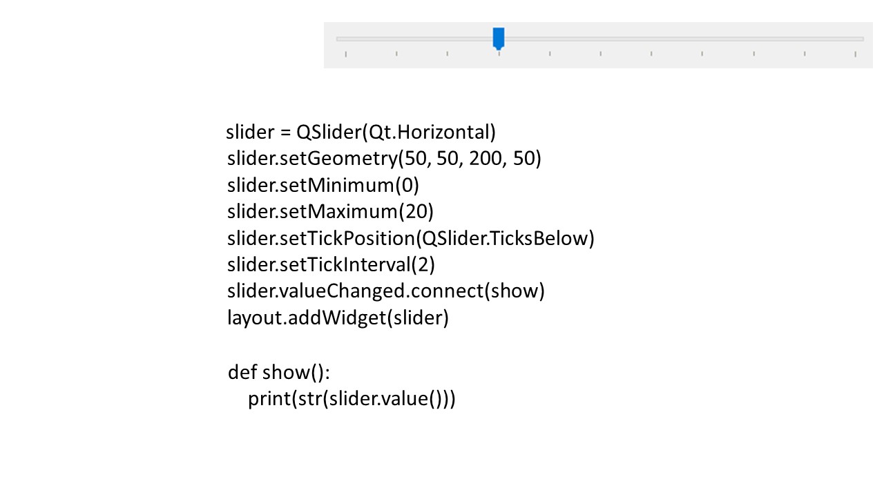 Виджет PyQt QSlider предоставляет графический интерфейс для выбора значения из диапазона различных значений.