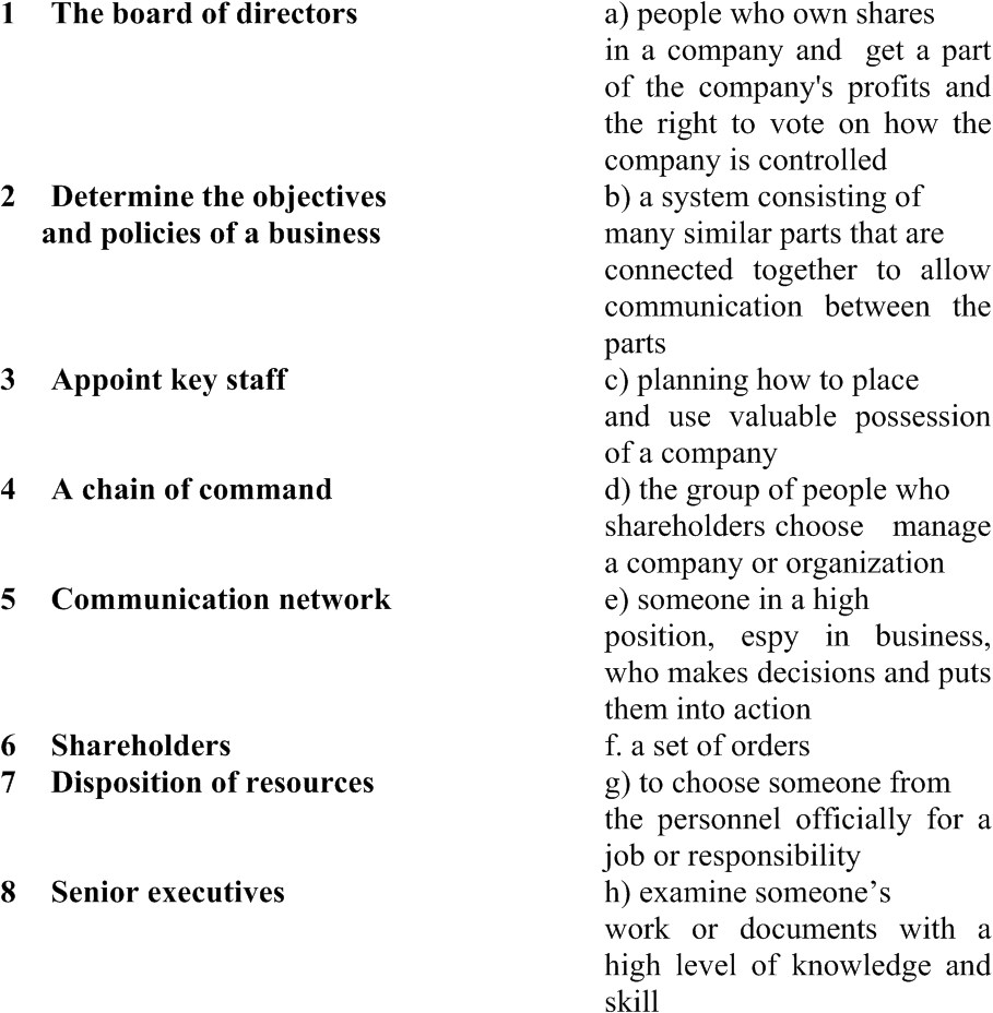 ▪ Before reading the text, discuss in small groups what role plays the board of directors in the governing the company.