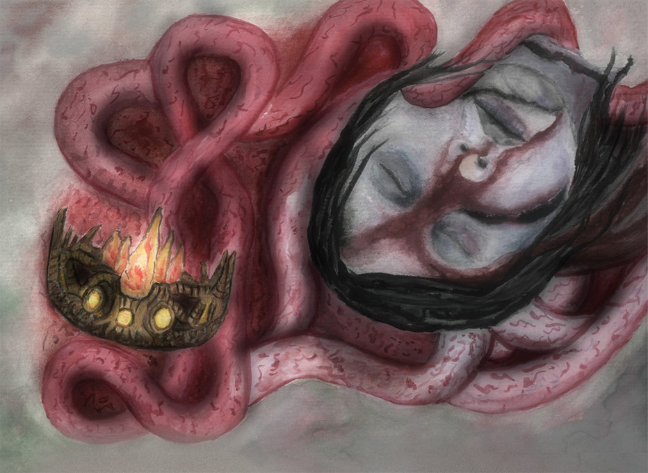Чёрные волосы, отслоившиеся от небольшого черепа, кусками растеклись по склизкой массе, а намертво осевшие на глаза веки, казалось, скрывали за собою предсмертный ужас. Ужасом был объят и Франк, завопивший, как сумасшедший.