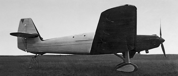 Стратоплан БОК-1, оснащенный двигателем АМ-43ФРН с трехлопастным воздушным винтом, в ходе проведения испытаний установлен в линию полета для проведения регулировок