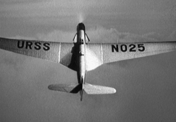 Кадр из фильма «Валерий Чкалов» имитирует при помощи макета полет самолета АНТ-25 URSS NO25. На самом деле представлен самолет БОК-15