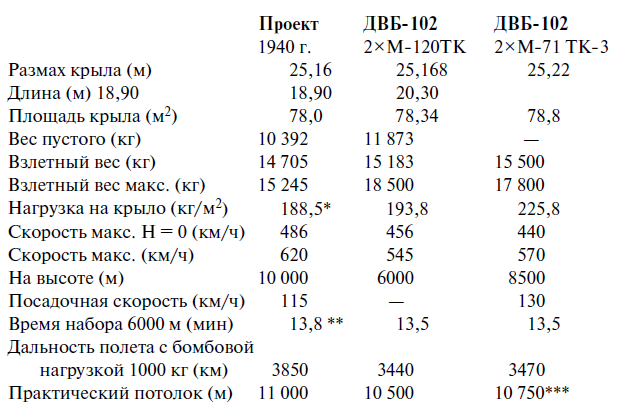 В начале 1944–го достроили второй экземпляр машины, который ориентировали под двигатели АШ-72. Между тем именно в этот период активизировались работы по созданию четырехмоторных тяжелых бомбардировщиков нового поколения («64» – А. Н. Туполева, ДВБ-202 – В. М. Мясищева и др.). Расчетные характеристики этих машин заметно превосходили данные ДВБ-102, задуманного еще до войны. Летом 1945 г. оба экземпляра высотного бомбардировщика законсервировали до лучших времен, которые, впрочем, никогда не наступили.