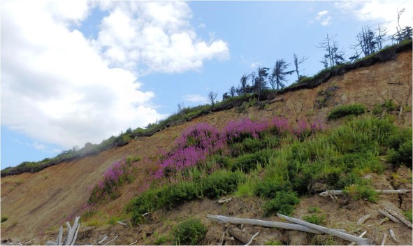 Северней начались глиняные обрывы, на верху лес. Прибрежная полоса широкая, дров полно.