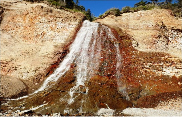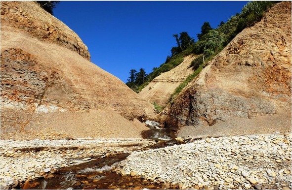 Ручей Пильтун оставил позади, вода бардовая. Здесь, наверное, на всех речках бардовая вода.