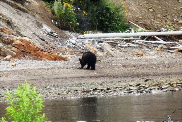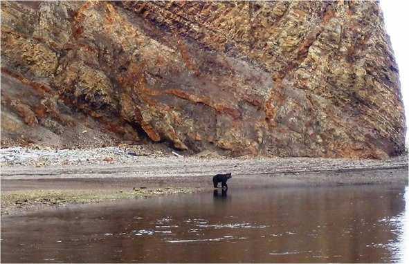 На завтрак решил разогреть пакет каши перловой. В котелке вскипятил воду, туда пакет с кашей и крышкой накрыл. Пока каша разогревается, решил прогуляться до устья. На левом берегу приличный медведь, хороший, крупный зверь килограмм на триста, черный. Мишка, увидев человека, резко развернулся. Пошёл было в обратную строну. Остановился. Видать о чем-то подумал. Снова развернулся и пошел, куда и шёл. Там, наверное, рыба поротая лежит.