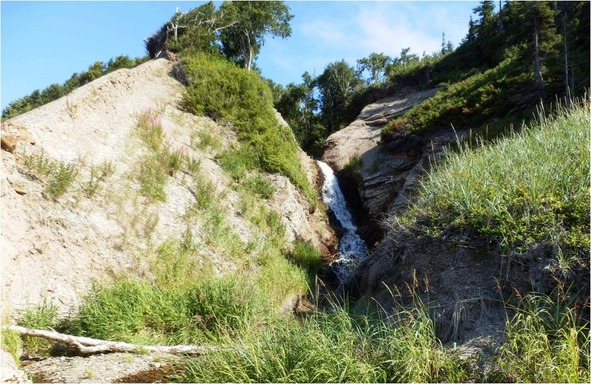 Речушка не большая, рыба есть. Вода можно сказать чистая, прозрачная. Рюкзак оставил на устье, стал осматривать окрестности. Искать подходящее место под бивуак. А точней хорошее место, завтра днёвка. Метрах в ста южней устья Шонги, заметил в траве старые полусгнившие ступеньки. Тропинка, через пятнадцать метров вывела на большую площадку.