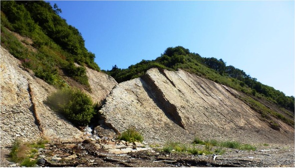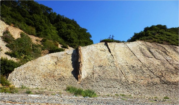 Место попалось интересное, обрыв, не отвес, как бы стена, выложенная с плит, под наклоном.
