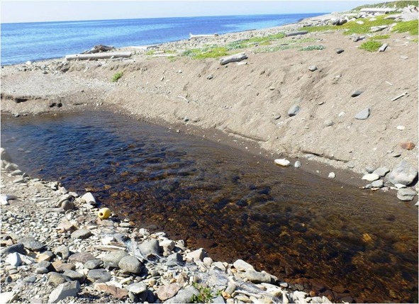 Река Пильво большая, она самая большая на полуострове Шмидта, вода бардовая. Отлив пока что не полный, но хороший отлив. Пошёл бродить. И надо же беде случиться, фактически на выходе, в трёх метрах от правого берега, посох подломился. Да такой посох, его и посохом-то стыдно назвать. Короче в правый сапог слегка брызганул, а в левый брузганул с горкой! Вода, что парное молоко. С трудом вылез на берег.