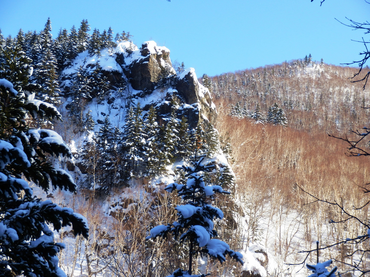 Первый перекур устроил на старом месте, над водопадом. Дальше пошёл по тому самому маленькому распадку, откуда выехал после двухчасового барахтанья в снегу. Метров триста прошёл в южном направлении, с западным уклоном. Крутой поворот – сразу начался серьёзный подъём.