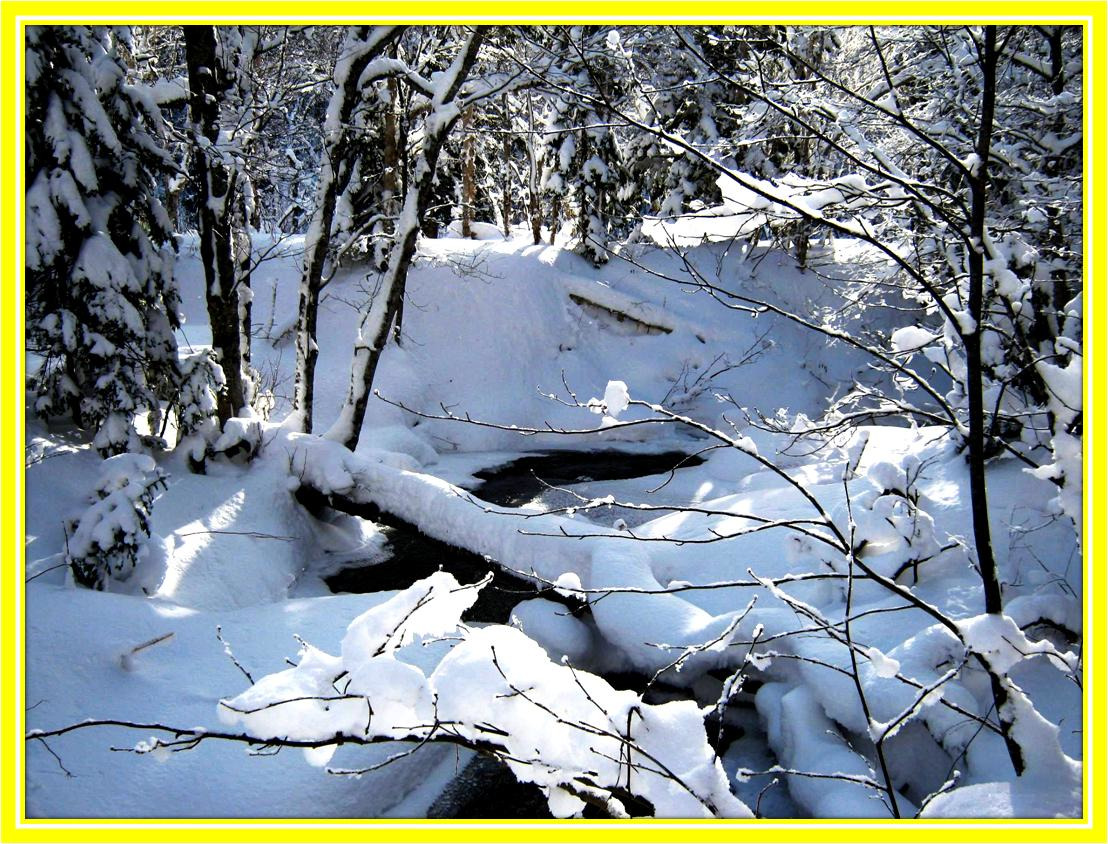 Ремешки креплений пришлось отпускать до предела. С трудом впихнул носки упакованных ног в центральный ремешок. Надел рюкзак, поехал до брода. Спуск к реке крут. Снял лыжи. Забыл, что на новой самопальной обувке нет протекторов, – полиэтилен скользит по снегу лучше, чем болоний! Так что в воду слетел на скорости, подняв фонтаны брызг. От неожиданности чуть не упал в речку.