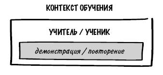 Если ученик не повторяет (и не важно – не может или не хочет) то, что ему продемонстрировали, то он не является учеником, и контекст Обучения не состоялся. Если учитель вместо демонстрации рассказывает, как он в 17-м брал Зимний или какой негодяй начальник транспортного цеха, то повторять нечего (разве что его байки). Опять же нет, да и не было контекста Обучения.