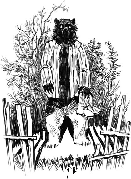 Незнакомец недовольно заворчал, дедушка инстинктивно посветил ему в лицо, и… Это было вовсе не лицо. Длинная звериная морда, поросшая бурым мехом, с маленькими глазками, блеснувшими в свете фонаря, черным кожаным носом. Существо сгорбилось и попыталось прикрыть морду сапогами.