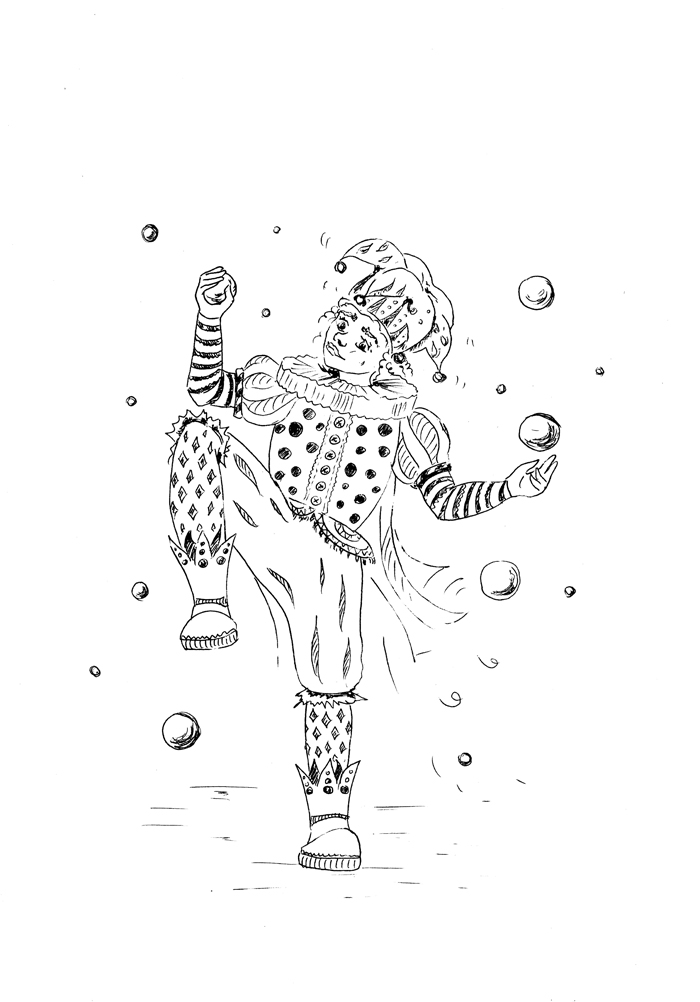 Потом шут остановился. Вышел на улицу, посмотрел вверх, на небо, как будто кого-то там видел и слышал. Только потом продолжил: «Есть такая страна «Смешинка», там все хохочут в полный голос, там вас снежинки пощекочут! Есть вторая страна – «Хитринка», там полно умников, и считают они пушинки, на перины, чтобы лечь. В третьем царстве под названием «Корзинка» набирают слуги в корзины всего-всего, но если потеряешь чего, то этой же корзинкой и накажут! Если вы сущность этих трех царств отгадаете, то в каждом получите по ключику от башни, где кудрявый шар заточен».