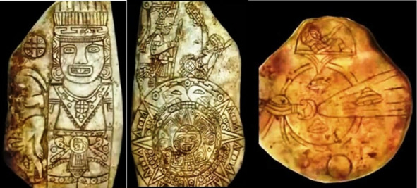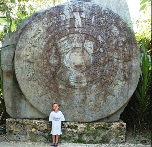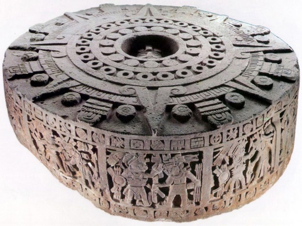 – календарь майя с Богом Солнца Тонатиу по центру;