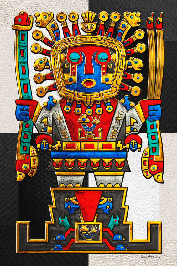 Рис. 39. Сосуд культуры Уари (1 век н.э). В фигуре Бога Виракочи – 14 звеньев в цепочке меандра и 4 лепестка сверху изображения Меркурия [257]