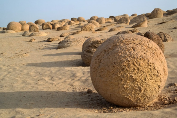Казахстан. Долина шаров, в Мангыстауский области в примерно 100 км от г Актау [73] – рис 21. Долина шаров представляет собой поле, усеянное сотнями каменных глыб идеальной сферической формы различного размера от 30 см до 4 м в диаметре.