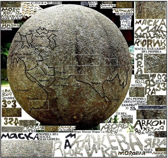 До сих пор остаётся открытым вопрос датировки каменных шаров. Для древнего камня не применим радиоуглеродный анализ, так как используется этот метод только для датировки биологических остатков. Например, сферические камни из Коста-Рики официальная наука датирует 600—1000 годами н.э., а учёный из США Д. Эриксон утверждает, что шары появились более 12 тысяч лет назад [112]. Однако, существует ещё одна версия, пожалуй, самая шокирующая. Это версия академика РАЕН Валерия Чудинова. Легко читая затёртые временем надписи русскими рунами на некоторых шарах, он утверждает: перед нами глобусы (петросферы – по латыни или большие круглые маски Макоши по-русски). «Изготавливались эти продукты сознательного картографического творчества в период расцвета Руси Рюрика, то есть, пока она не пала в войне с Римом. Географические глобусы изготавливались в храмах Яра, геологические – в храмах Макоши. И эти храмы были посвящены Рюрику. Изготавливали глобусы и в последний год жизни Рюрика, и спустя практически 300 лет. Словом, все годы, пока существовала Русь Рюрика»!