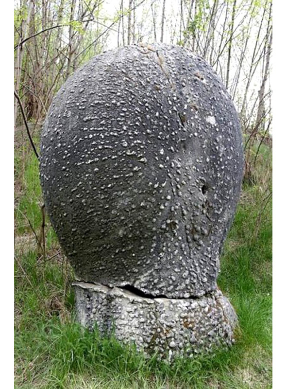 На фото сколотого шара на острове Чамп видно (рис. 64), что обработка сверху до конца не доведена. Шар не имеет идеально круглой формы, либо же он перевернут «шеей» в верх.