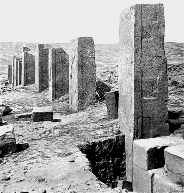 «Блоки из красного песчаника внешней северной и южной стен Каласасайи, которые, когда они были построены, имели правильную форму, – пишет Познанский, – Были очень хорошо вырезаны и покрыты символическими надписями на внутренней стороне, о чем свидетельствует фрагмент, (рис. 86) сохранившийся случайно. Теперь они имеют вид грубых блоков, недавно извлеченных из карьеров, некоторые даже распались или исчезли, или есть лишь их скудные остатки».