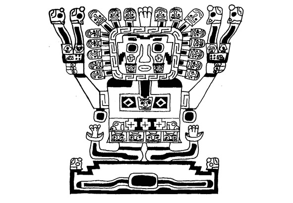 Рис. 40. Бог Виракоча. У него два звена меандра по 7 ячеек [36]. Меркурий (изображение небольшого лица сверху) имеет 4 лепестка над головой.