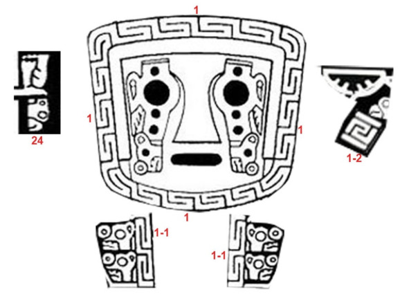 Рис. 41. Лицо Бога Виракочи. Здесь два звена меандра по 7 ячеек [37]