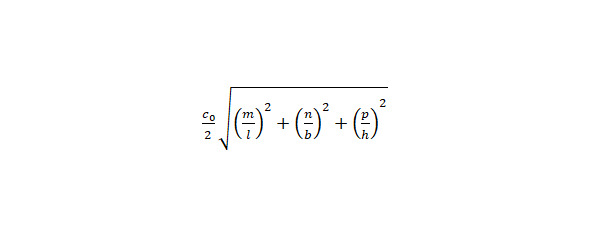 f = C0/2 {(πm/a) 2 + (πn/b) 2 + (πp/c) 2} 1/2