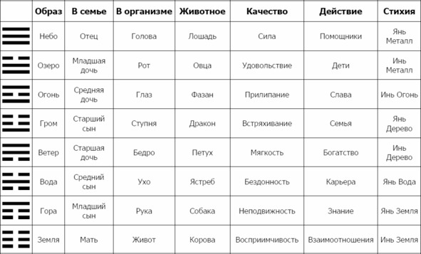 Все 8 триграмм из «Книги Перемен» показаны в табл. 1.
