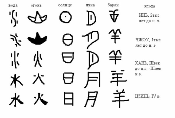 Таблица 2. Китайские иероглифы в разные эпохи [156]