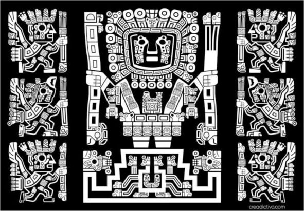 В центре календаря изображен Верховный Бог, которого многие называют Богом Солнца, или же Богом инков Виракоча. По мнению автора этой книги, Александра Матанцева, наблюдается прямая аналогия с календарем майя. Что майя, что ацтеки, что тольтеки, имели один и тот же вид первоначального календаря. Однако названия Богов у разных народностей отличались. Так у ацтеков в центре календаря изображался Бог Солнца Тонатиу, а у майя – Бог Солнца, Кинич-Ахау (Kinich Ahaw), и он выглядит в кодексах очень похожим на Бога Ицамну.