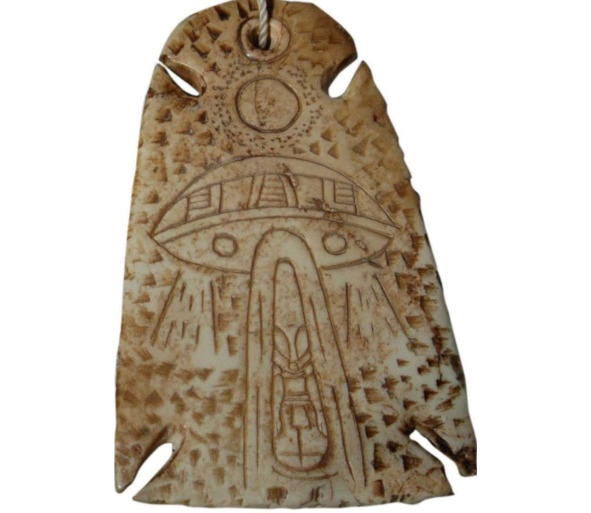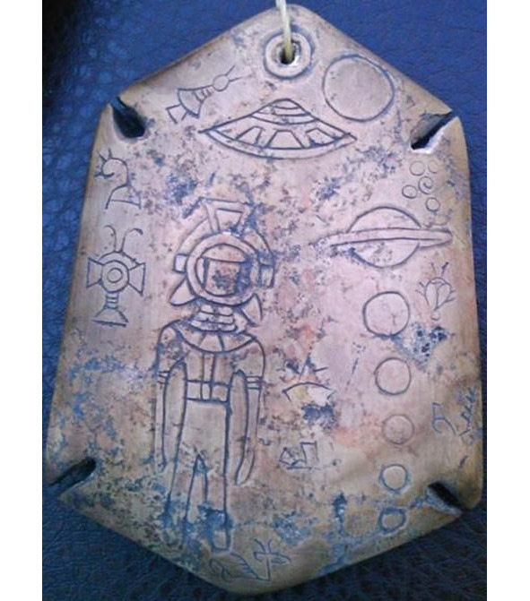 Рис. 44. Артефакт А27 с изображением космического корабля, пришельца и Сатурна [155]