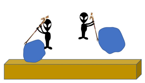 На рис. 160 приведено три случая внешнего воздействия человека на предметы, в том числе, на камни.