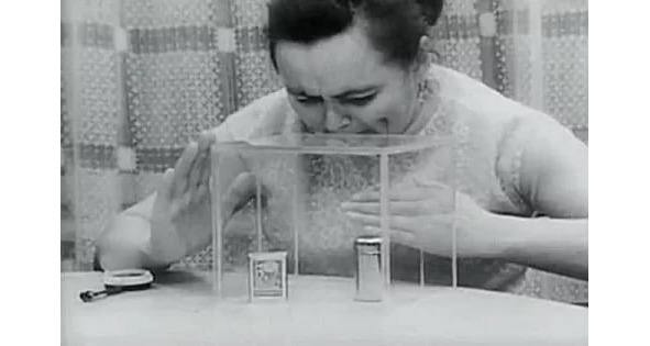 Рис. 163. Нинель Кулагина проводит опыт с передвижением предметов, находящихся под колпаком [28]