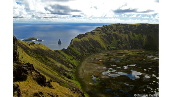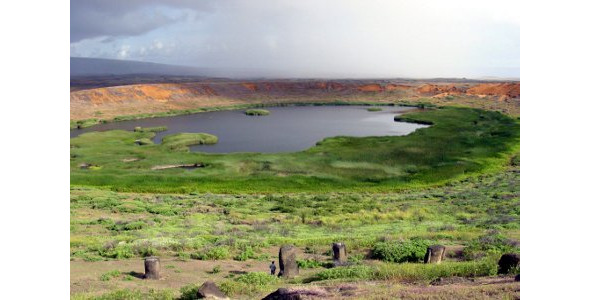 Среди огромного количества достопримечательностей есть на этом острове место особое – вулканический кратер «Рано Рараку» из спрессованного вулканического пепла или туфа [113]. Рано Рараку – потухший вулкан высотой около 150-ти метров, находящийся в восточной части острова посреди поросшей травой равнины, в 20 километрах от города Ханга-Роа и в одном километре от побережья [111].