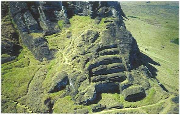 Рис. 19. Статуи до сих пор лежат на вершине Рано Рораку, где они были вырезаны [132]