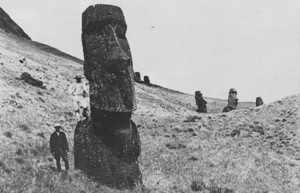 Первое серьезное исследование статуй на острове Пасхи было проведено в 1914—1915 годах англичанкой Кэтри Рутледж. Ей была составлена карта острова с нанесенными вулканом Рано Рараку, где были высечены большая часть колоссов, всего около 400 статуй [124].