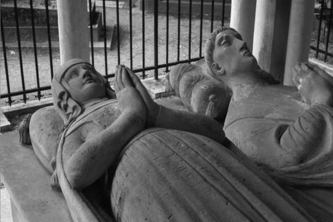 На могиле Элоизы и Абеляра, до сих пор привлекающей посетителей, установлена неоготическая капелла; в ней на гробнице лежат стилизованные изображения легендарной пары с молитвенно сложенными на груди руками (ил. 1 и 2). В кладбищенской терминологии такие памятники называются эффигиями (от лат. effigiē – «репрезентация»; термин возник в Средневековье). Как отмечает Филипп Арьес, несмотря на горизонтальность эффигий, изображающих упокоение смерти, складки их одеяний соответствуют стоящим, а не лежащим фигурам[61], как бы предвещая вертикальность воскресения в будущем. Это состояние можно описать как промежуточное – между смертью и ожиданием новой жизни.