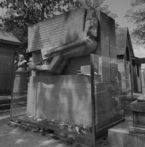 Надгробия Роденбаха и Уайльда выделяются на Пер-Лашез – модернистские памятники встречаются там нечасто. Подобно Роденбаху, Уайльд совмещал слово и образ в своих произведениях, особенно в «Портрете Дориана Грея», где живопись исполняет основную сюжетную (а также моральную) функцию: Дориан Грей остается вечно молодым, однако на портрете, где он изображен красивым юношей, герой стареет и в качестве расплаты за «аморальные» наслаждения становится уродом; таково необычное соотношение между жизнью и искусством в романе.
