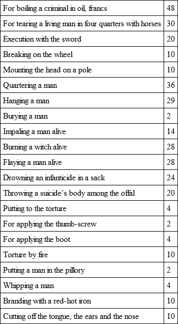 The following list of prices for dealing with criminals is taken from the official records in Paris: