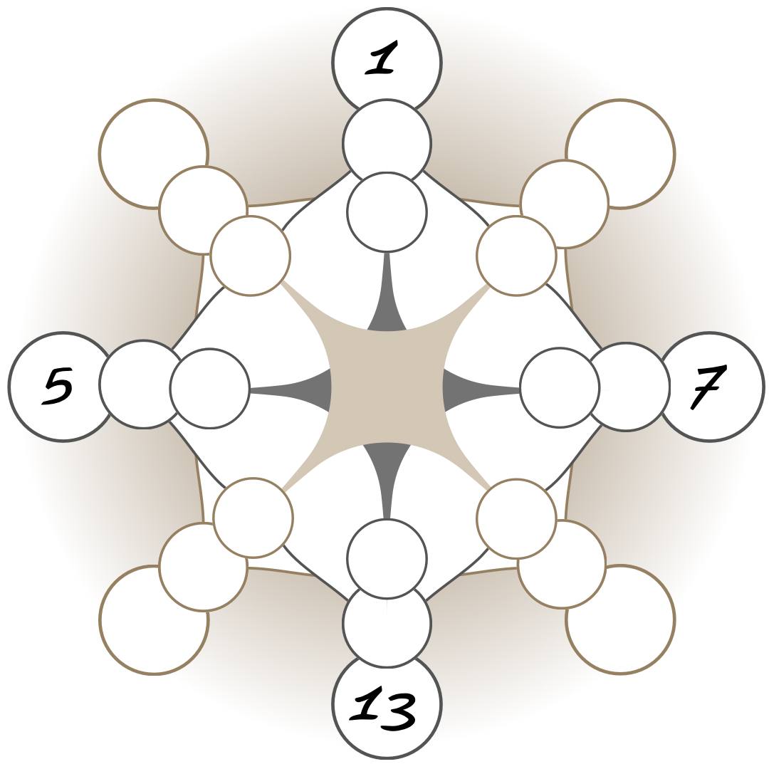 В верхний угол матрицы мы вписываем аркан месяца рождения. Он всегда будет в диапазоне 1-22, поэтому упрощать не надо, а сразу вносим значение в матрицу:
