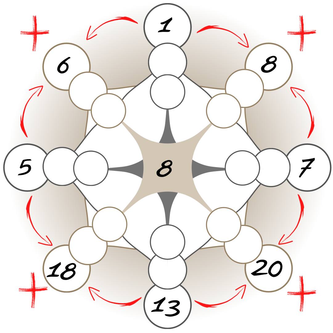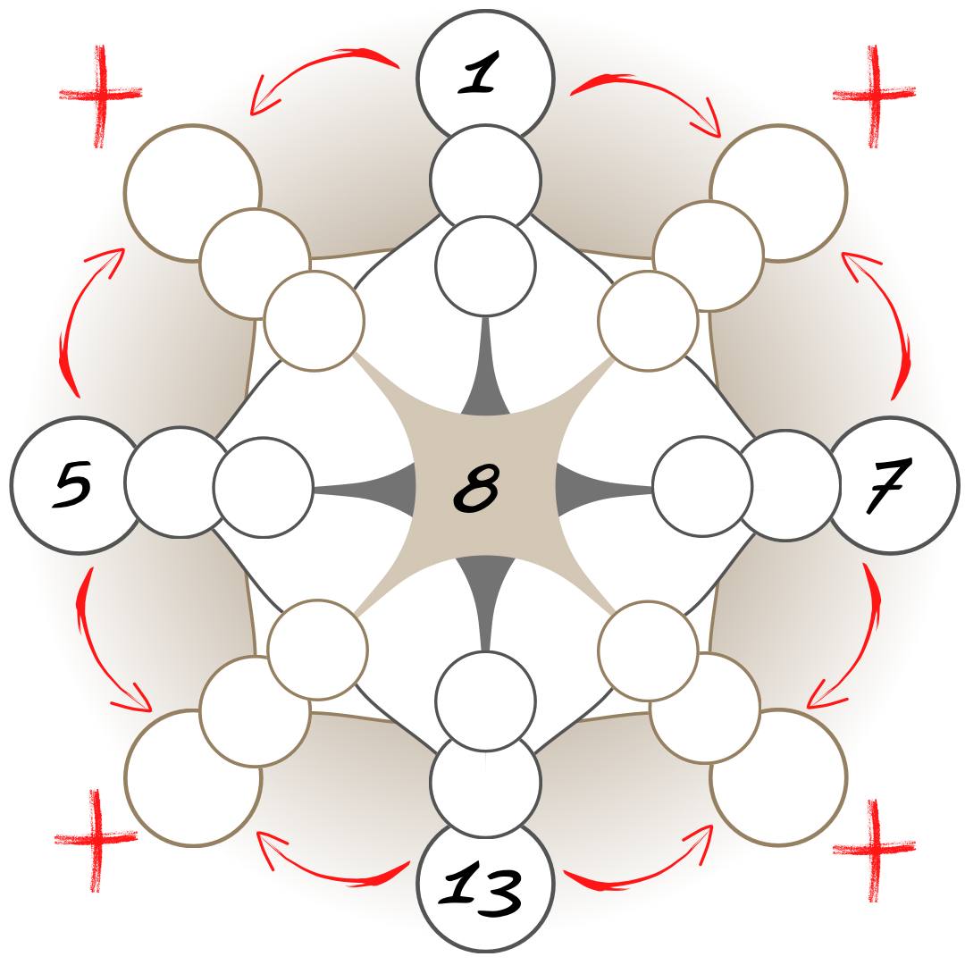 Мы получили значения личностного квадрата матрицы. На данном этапе также можно просчитать основную энергию, центральную. Это зона комфорта человека. Данный аркан определяет характер человека и имеет влияние абсолютно на все сферы жизни.