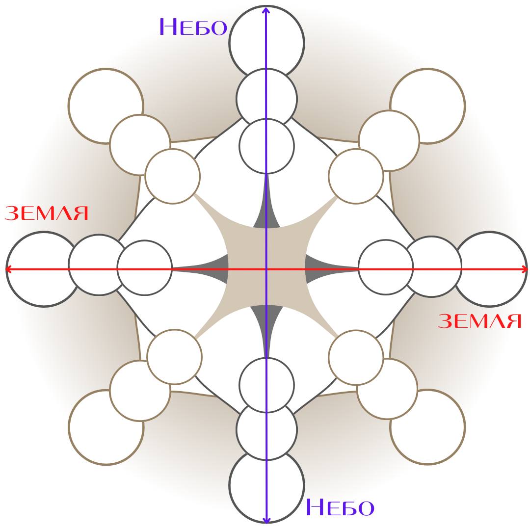 Линия Неба (Н) – складываем значения верхушек личностного квадрата по вертикальной линии: