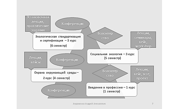 В обобщённом виде реализация трансдисциплинарного подхода к образованию в области комфортного сосуществования людей и животных на урбанизированных территориях в рамках подготовки экологов-природопользователей на кафедре Международных комплексных проблем природопользования и экологии МГИМО МИД России показана на рис. 1.