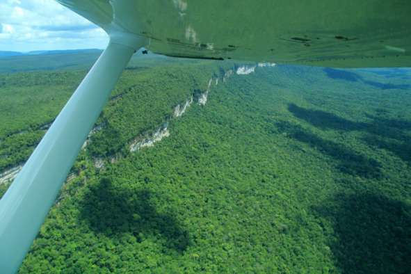 Взгляд с высоты позволяет оценить детали рельефа местности, которые плохо различимы с земли. Сложно понять, но, как мне показалось, в окрестностях Миту много вторичного леса. Чем дальше от Миту, тем лесной покров становится гуще, над девственным лесом встают горные плато – Серро-Аси, Серро-Гуакамайо и Серро-Мороко. Они вертикально вздымаются над джунглями, их высота достигает несколько сот метров. Впечатляющее величественное зрелище! Местами, на возвышенностях, лес отступает и образуется что-то вроде высокогорных лугов.