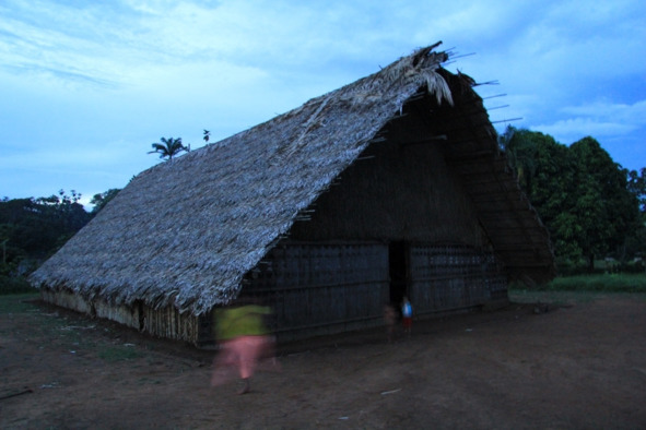 Мы приземляемся в Пакоа на взлетно-посадочную полосу, еще сырую после недавно прошедшего дождя. Колеса «Сессны» пробуксовывают в жидкой глине, самолет болтает, трясет, бросает из стороны в сторону – весьма неприятное ощущение. Наконец «Сессна» затихает в конце взлетно-посадочной полосы напротив большой малоки – общинного коммунального жилища прямоугольной формы под двускатной крышей.
