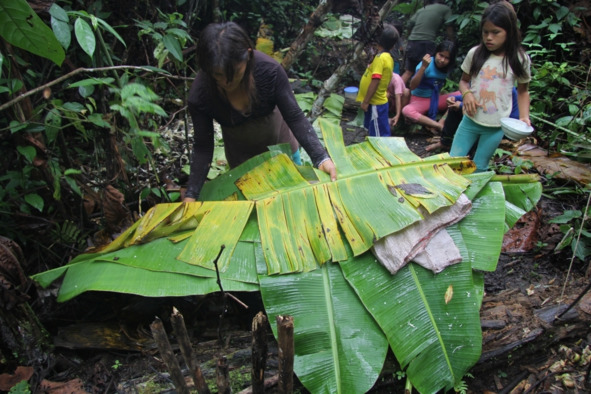 Маниоковую массу помещают под гнет